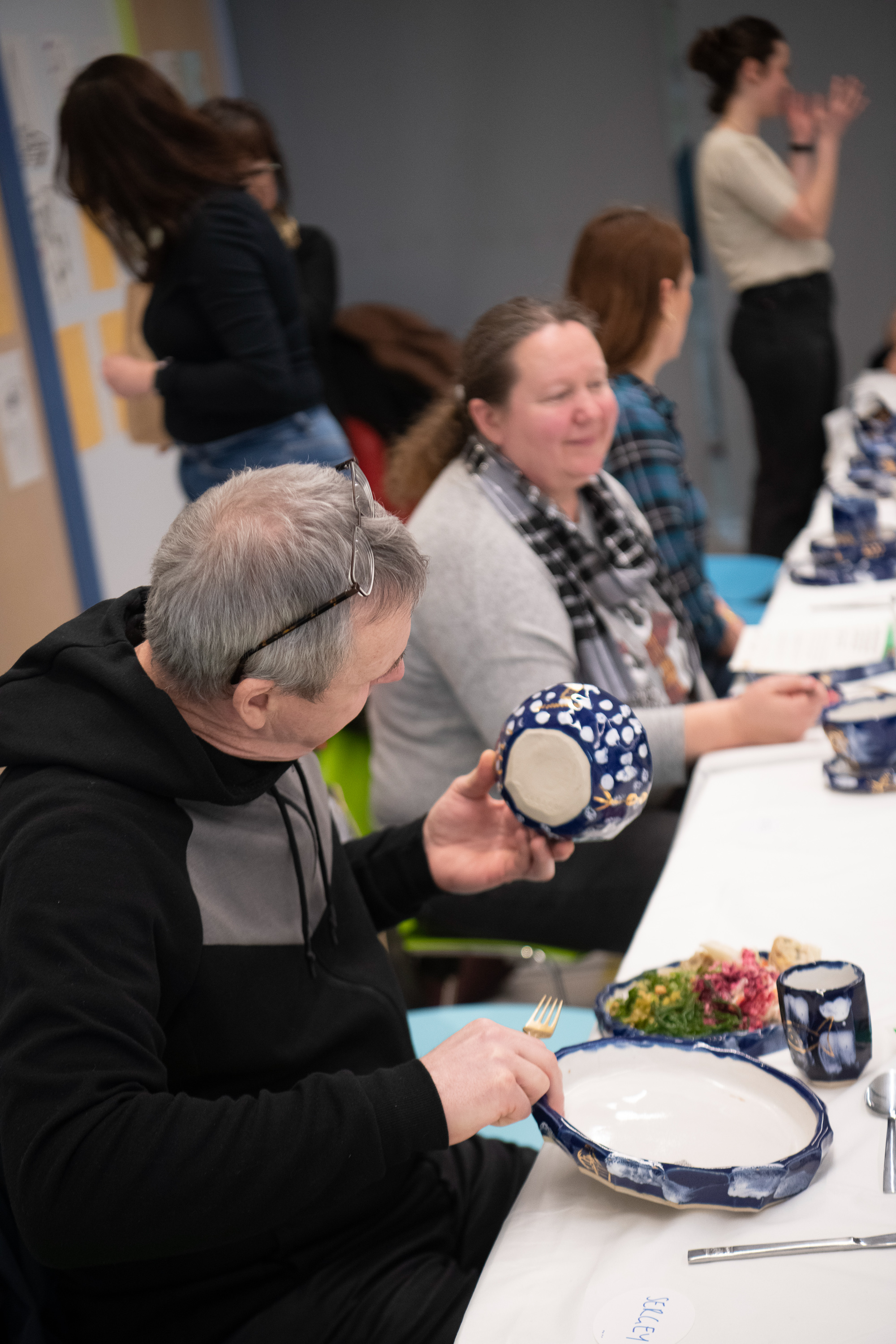 I designed a unique dinner service inspired by Sunderland’s historic Lustreware pottery, blending its iconic reflective finishes with participants drawings and influence from Sunderland’s coastline. The group collaborated in bringing this design to life in clay. The tableware and project reflect participants’ shared stories and cultural influences, celebrating the vibrancy of Sunderland’s diverse foodscape and the connections made between people and place.